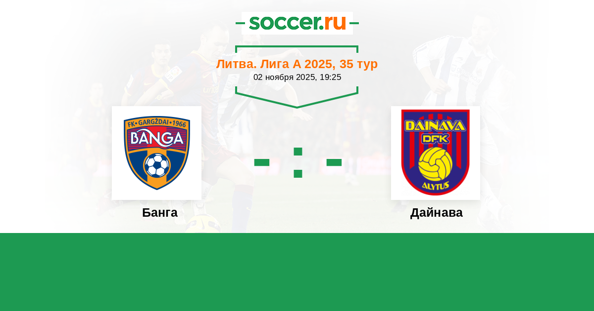 Литва. Лига А 16.09.2023 Банга Логотип футбольный клуб Банга (Гаргждай) 1:0 Логотип футбольный клуб Дайнава (Алитус) Дайнава