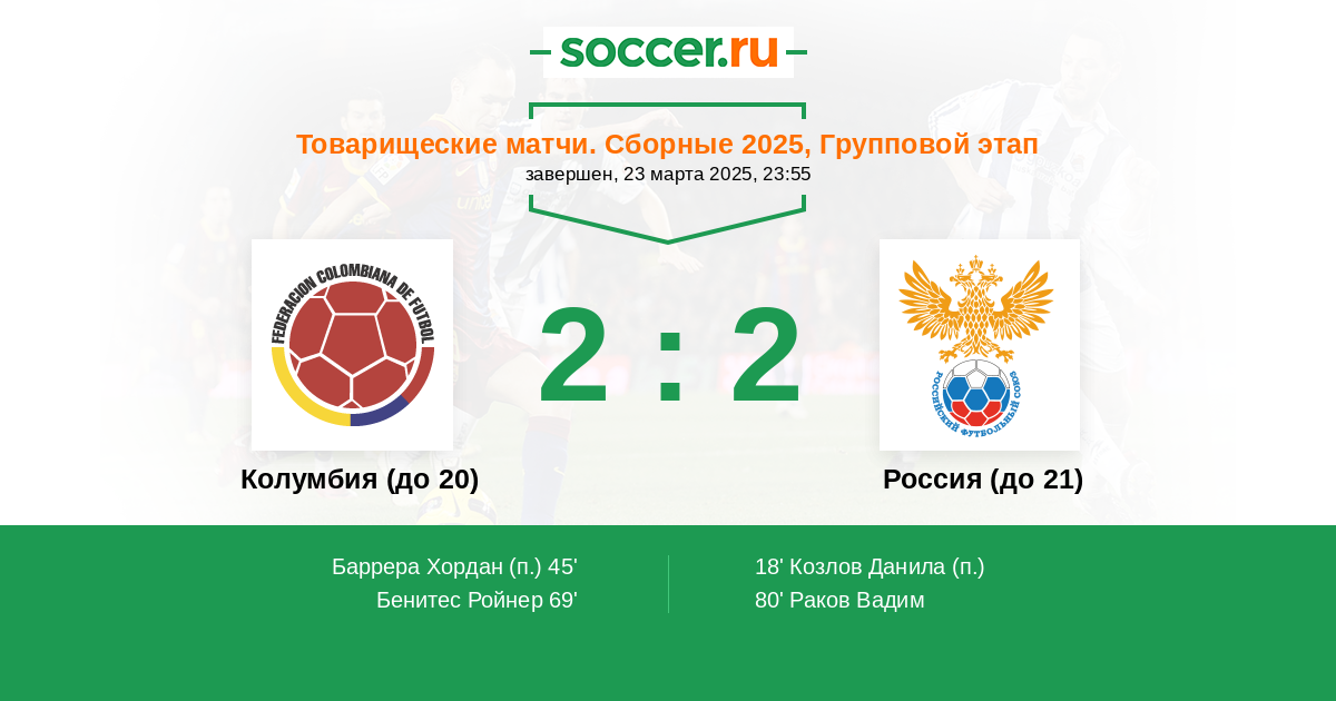 Колумбия (до 20) Россия (до 21)