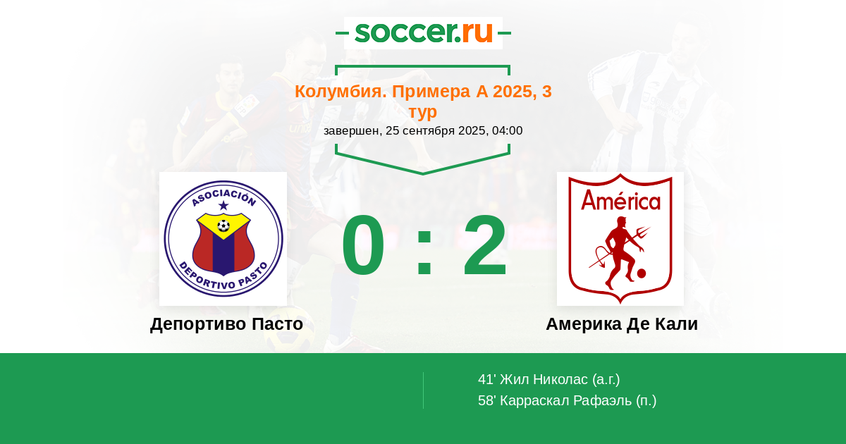Колумбия. Примера А 26.10.2020 Америка Де Кали Логотип футбольный клуб Америка Де Кали 3:2 Логотип футбольный клуб Депортиво Пасто Депортиво Пасто
