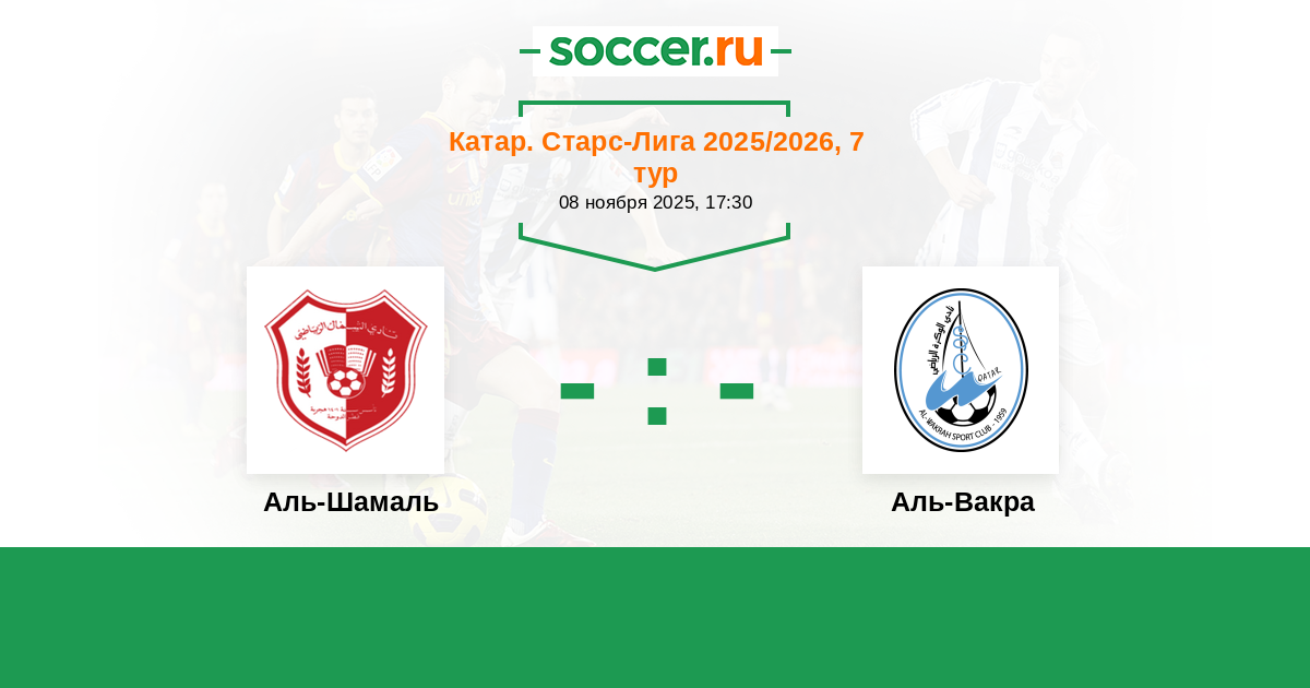 Катар. Q-Лига (2-й дивизион) 25.10.2017 Аль-Вакра Логотип футбольный клуб Аль-Вакра 1:1 Логотип футбольный клуб Аль-Шамаль (Аш-Шамаль) Аль-Шамаль