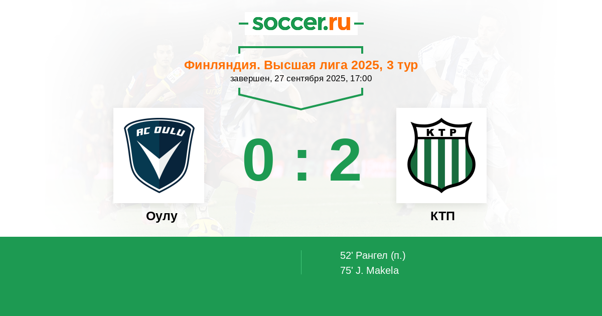 Финляндия. Высшая лига 02.05.2025 КТП Логотип футбольный клуб КТП (Котка) 1:3 Логотип футбольный клуб Оулу Оулу