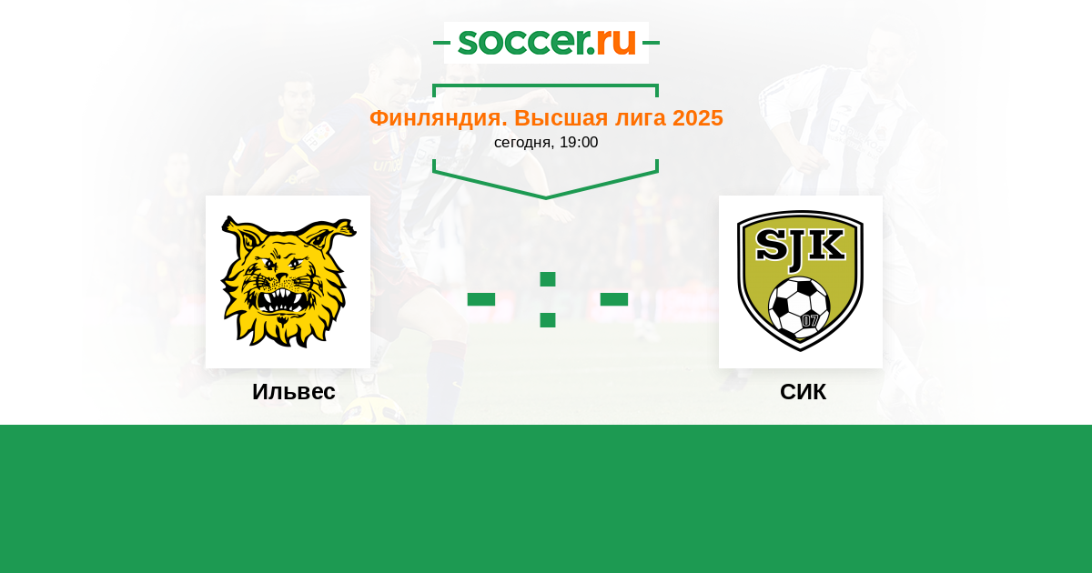 Финляндия. Высшая лига 04.10.2025 СИК Логотип футбольный клуб СИК (Сейняйоки) 2:1 Логотип футбольный клуб Ильвес (Тампере) Ильвес