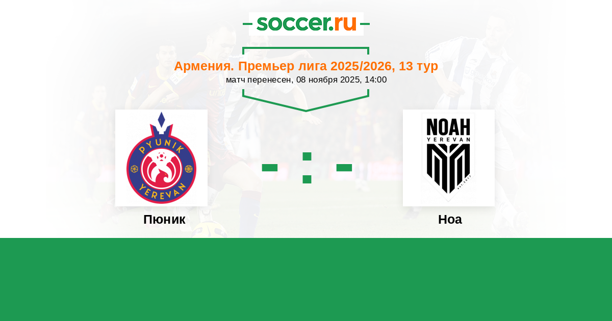 Армения. Премьер-лига 05.11.2021 Пюник Логотип футбольный клуб Пюник (Ереван) 1:0 Логотип футбольный клуб Ноа (Ереван) Ноа