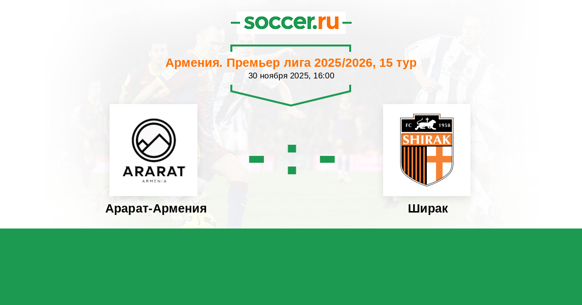 Армения. Премьер-лига 11.11.2023 Арарат-Армения Логотип футбольный клуб Арарат-Армения (Ереван) 2:0 Логотип футбольный клуб Ширак (Гюмри) Ширак