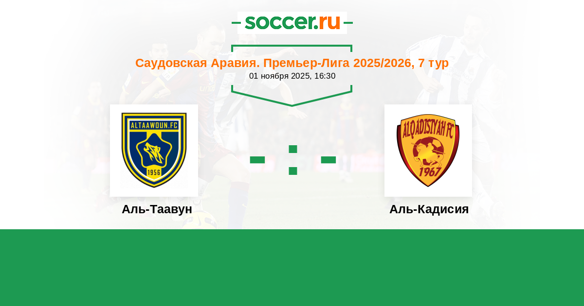 Саудовская Аравия. Премьер-Лига 01.11.2017 Аль-Кадисия Логотип футбольный клуб Аль-Кадисия (Эль-Хубар) 1:0 Логотип футбольный клуб Аль-Таавун (Бурайда) Аль-Таавун