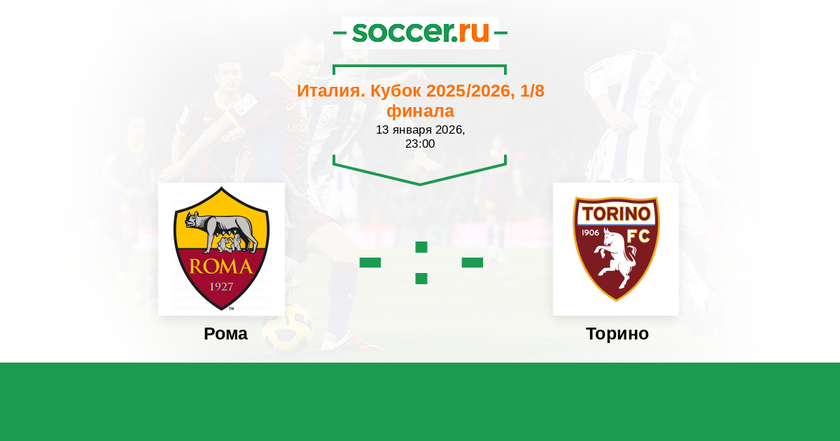 Италия. Серия А 18.01.2026 Торино Логотип футбольный клуб Торино (Турин) 0:2 Логотип футбольный клуб Рома (Рим) Рома