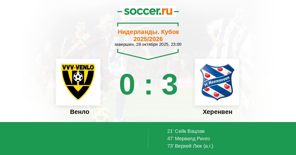 Нидерланды. Кубок 31.10.2023 Херенвен Логотип футбольный клуб Херенвен 5:1 Логотип футбольный клуб Венло Венло