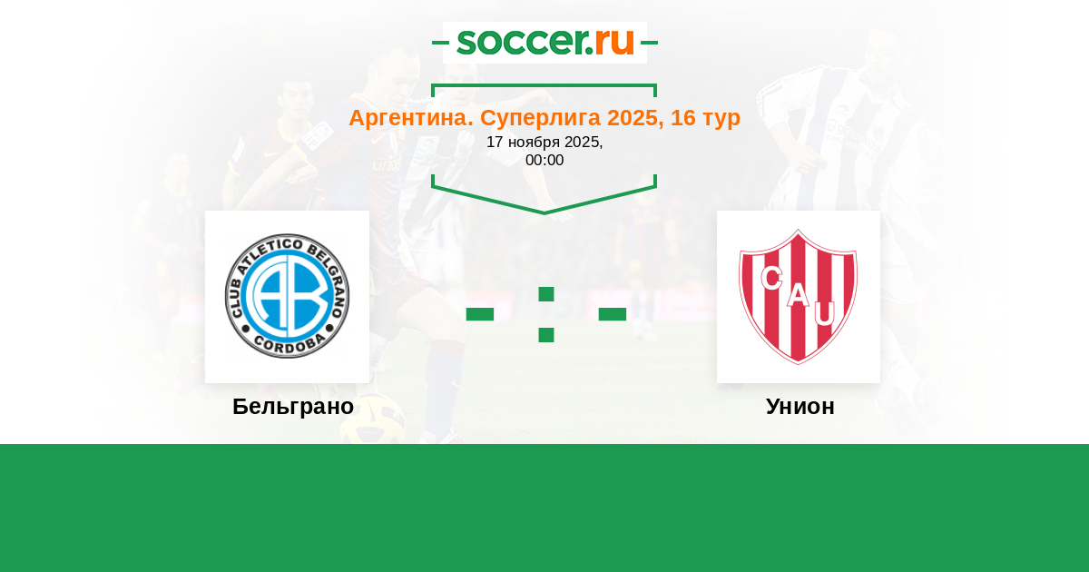 Аргентина. Суперлига 01.12.2017 Унион Логотип футбольный клуб Унион (Санта-Фе) 1:1 Логотип футбольный клуб Бельграно (Кордоба) Бельграно