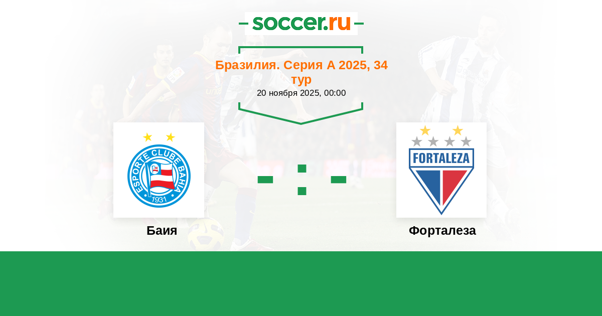 Бразилия. Серия А 19.07.2025 Форталеза Логотип футбольный клуб Форталеза 1:1 Логотип футбольный клуб Баия (Салвадор) Баия