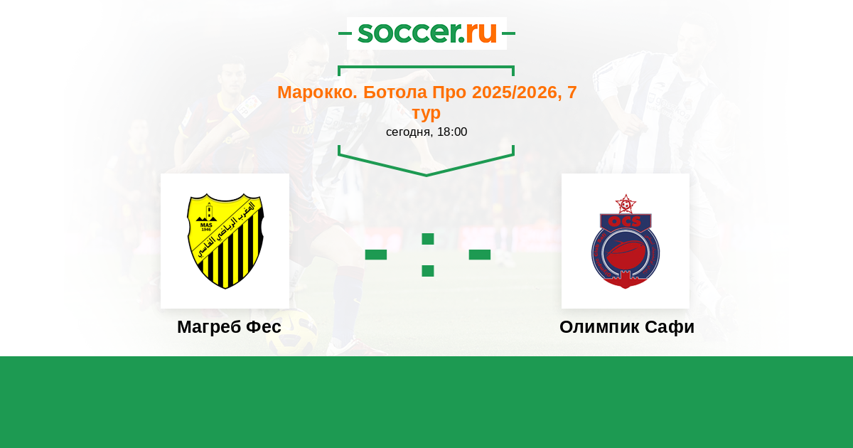 Марокко. Ботола Про 15.12.2024 Магреб Фес Логотип футбольный клуб Магреб Фес 0:1 Логотип футбольный клуб Олимпик Сафи Олимпик Сафи
