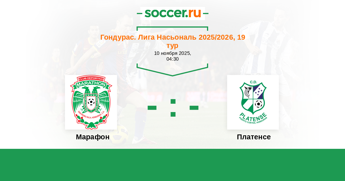 Гондурас. Лига Насьональ 11.03.2019 Марафон Логотип футбольный клуб Марафон (Сан-Педро-Сула) 2:1 Логотип футбольный клуб Платенсе (Пуэрто Кортес) Платенсе