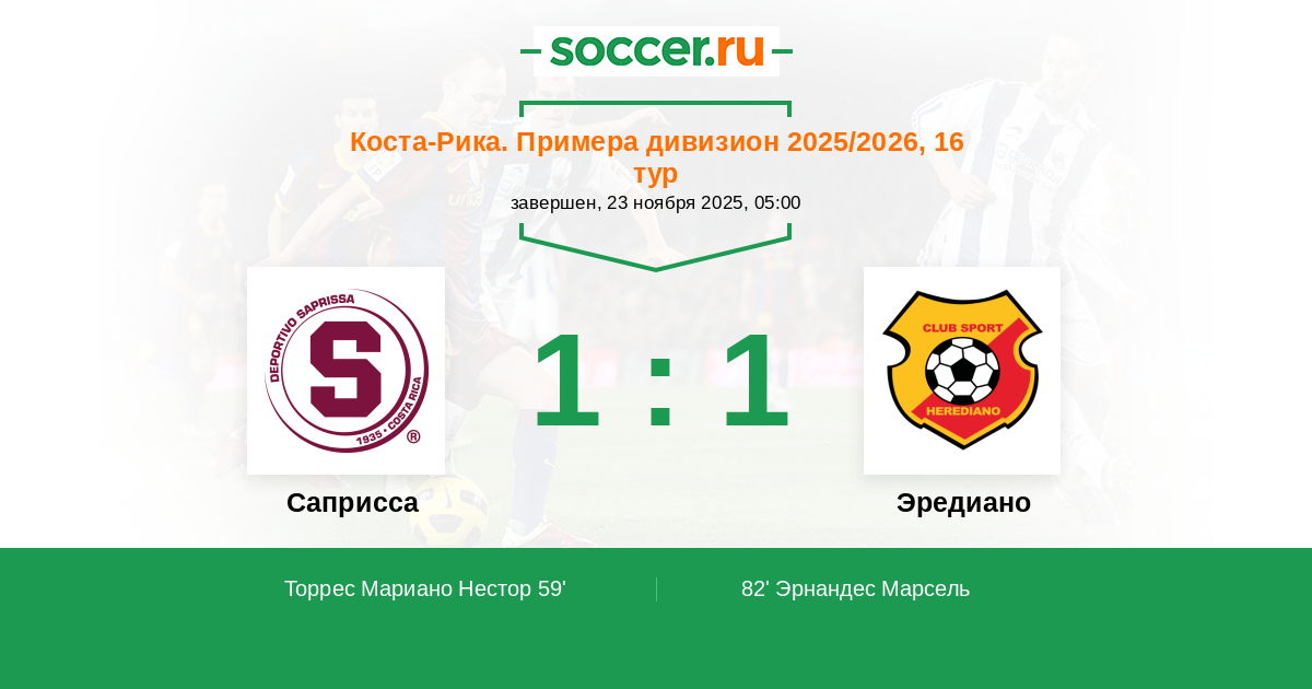 Коста-Рика. Примера дивизион 23.11.2014 Саприсса Логотип футбольный клуб Саприсса (Сан Хосе) 1:0 Логотип футбольный клуб Эредиано Эредиано