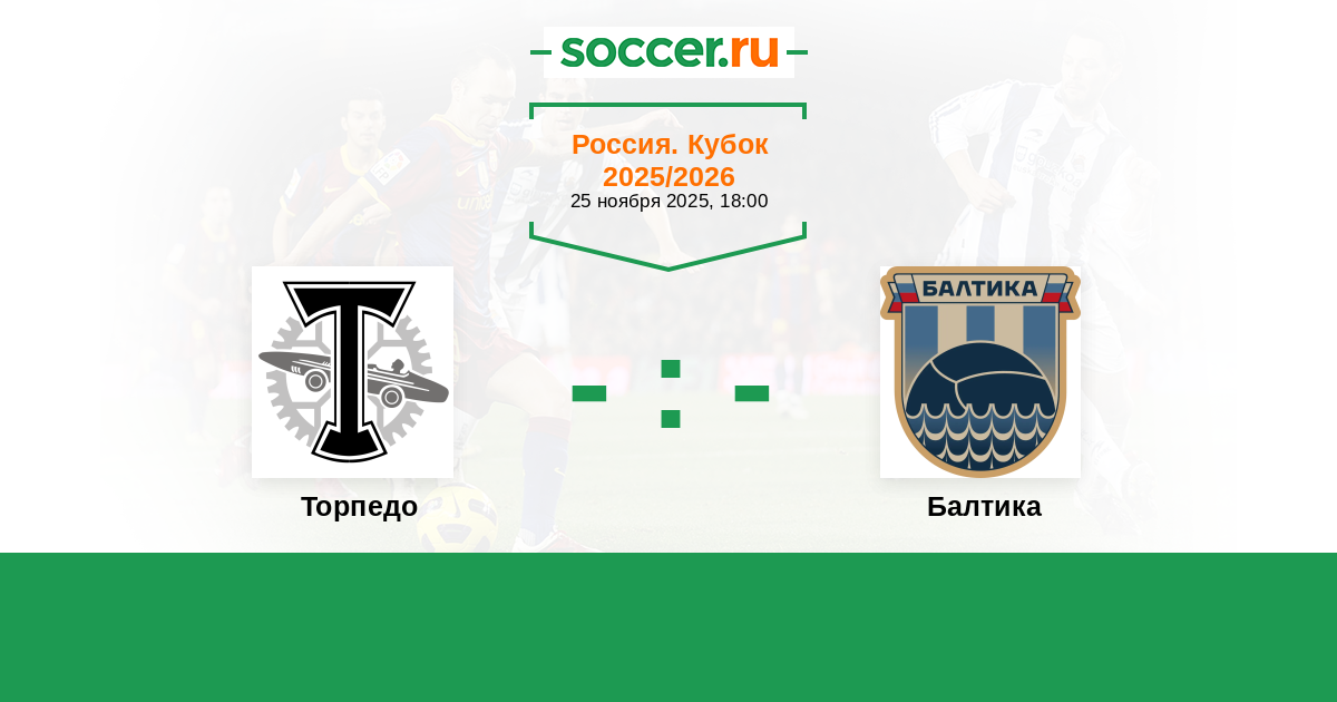 Россия. Первая лига 29.11.2020 Балтика Логотип футбольный клуб Балтика (Калининград) 0:0 Логотип футбольный клуб Торпедо (Москва) Торпедо