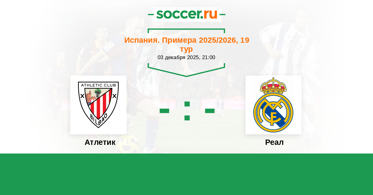 Испания. Примера 04.12.2024 Атлетик Логотип футбольный клуб Атлетик (Бильбао) 2:1 Логотип футбольный клуб Реал (Мадрид) Реал