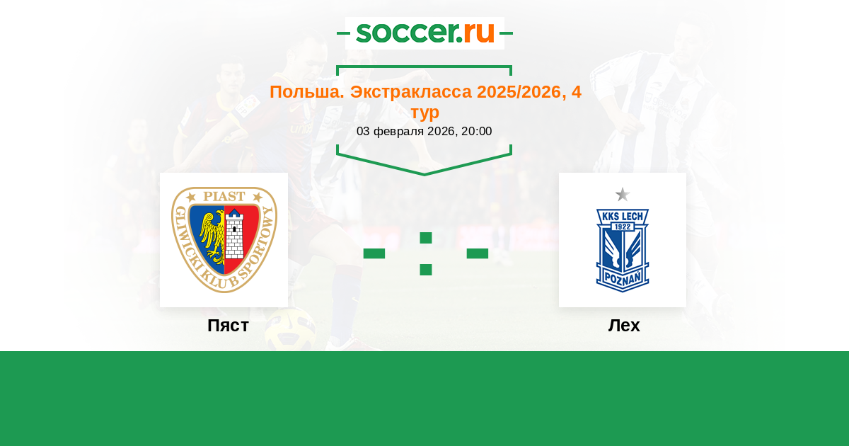 Польша. Экстракласса 14.03.2021 Лех Логотип футбольный клуб Лех (Познань) 0:0 Логотип футбольный клуб Пяст (Гливице) Пяст