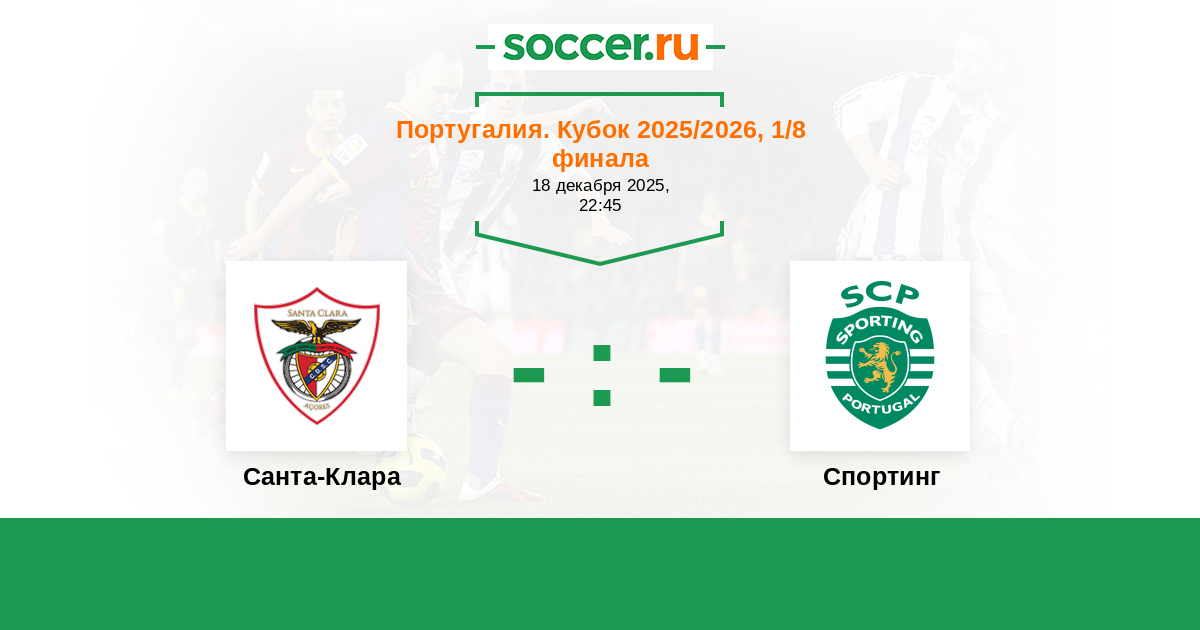Португалия. Кубок 18.12.2024 Спортинг Логотип футбольный клуб Спортинг (Лиссабон) 2:1 Логотип футбольный клуб Санта-Клара (Понта-Делгада) Санта-Клара