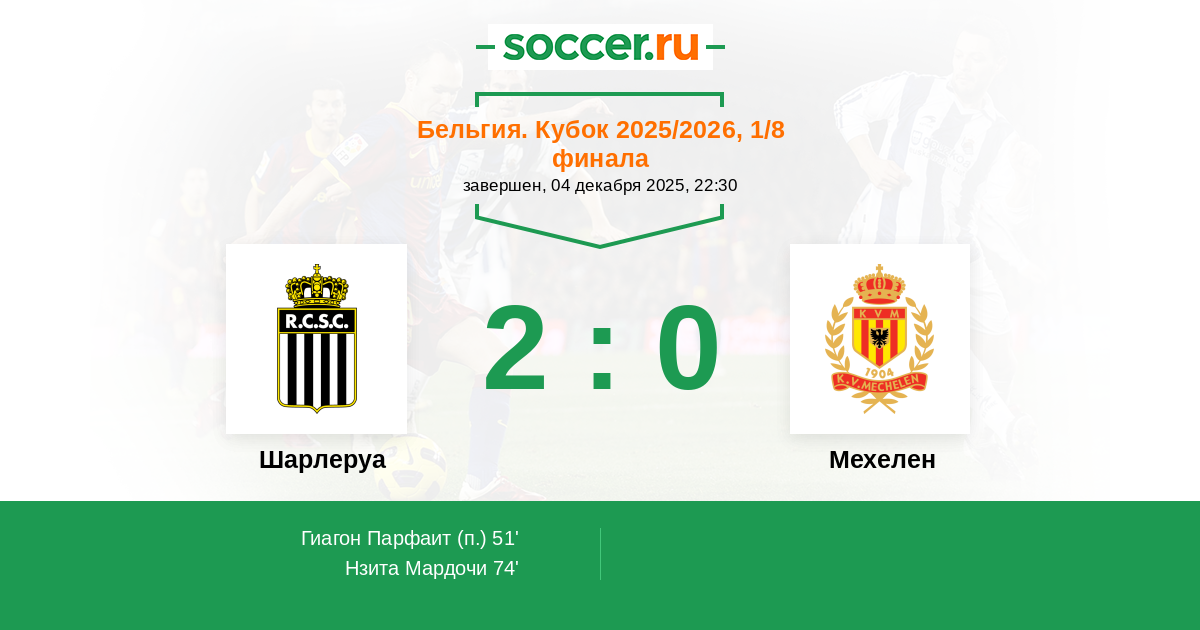 Бельгия. Про-Лига 07.12.2025 Мехелен Логотип футбольный клуб Мехелен 1:0 Логотип футбольный клуб Шарлеруа Шарлеруа