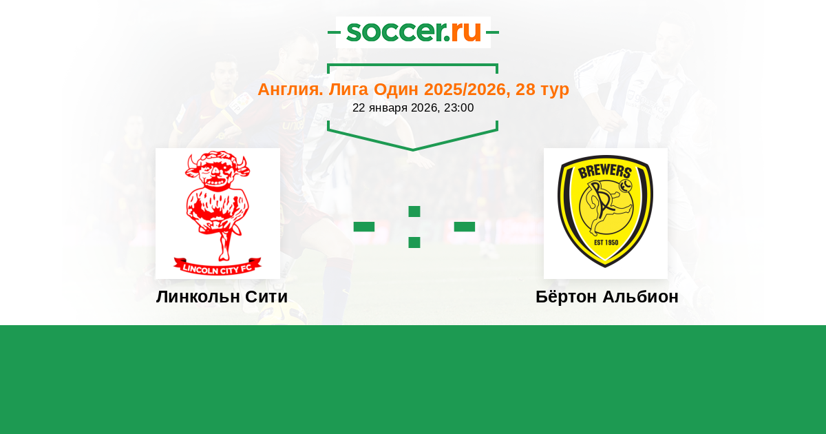 Англия. Первая Футбольная Лига 29.01.2022 Линкольн Сити Логотип футбольный клуб Линкольн Сити 1:2 Логотип футбольный клуб Бёртон Альбион (Бёртон-апон-Трент) Бёртон Альбион