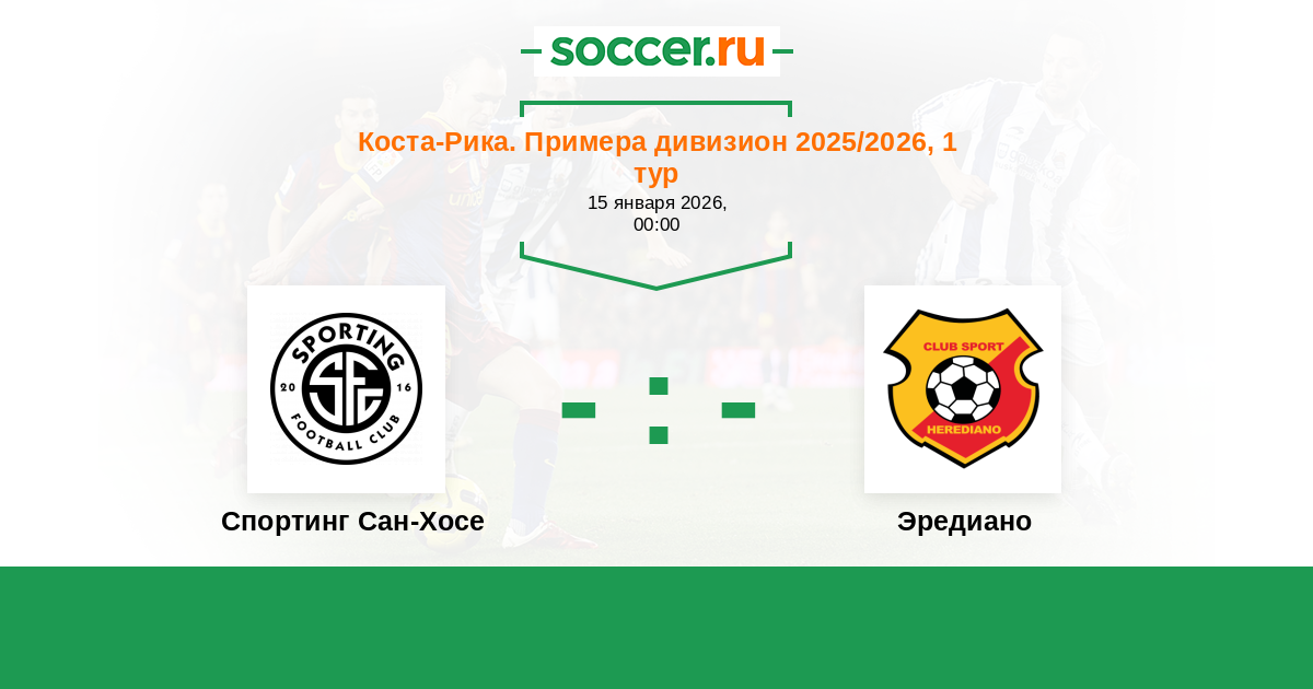 Коста-Рика. Примера дивизион 03.02.2025 Эредиано Логотип футбольный клуб Эредиано 2:0 Логотип футбольный клуб Спортинг Сан-Хосе Спортинг Сан-Хосе