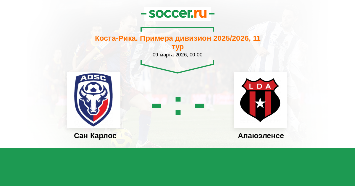 Коста-Рика. Примера дивизион 28.03.2025 Алаюэленсе Логотип футбольный клуб Алаюэленсе (Алаюэла) 0:0 Логотип футбольный клуб Сан Карлос (Сьюдад Куэсада) Сан Карлос