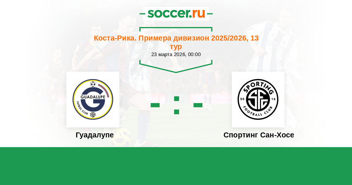 Коста-Рика. Примера дивизион 25.03.2023 Гуадалупе Логотип футбольный клуб Гуадалупе 1:1 Логотип футбольный клуб Спортинг Сан-Хосе Спортинг Сан-Хосе