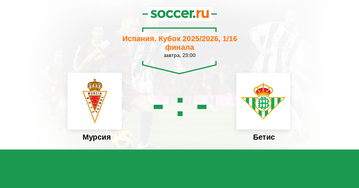 Мурсия - Бетис ! Довольно уверенную игру показали эти клубы перед сегодняшним матчем 1 / 16 . На пути к этому противостоянию команды играли результативно . Рискну поставить на голы .