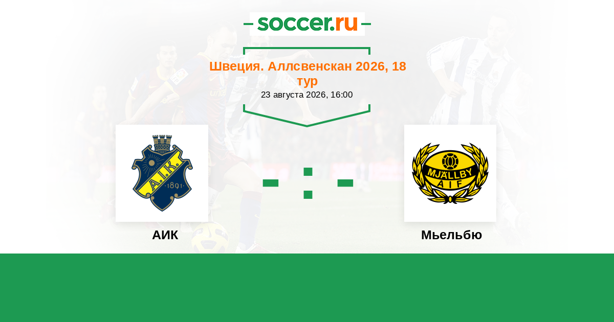 Швеция. Аллсвенскан 11.08.2024 АИК Логотип футбольный клуб АИК (Стокгольм) 1:0 Логотип футбольный клуб Мьельбю (Сельвесборг) Мьельбю