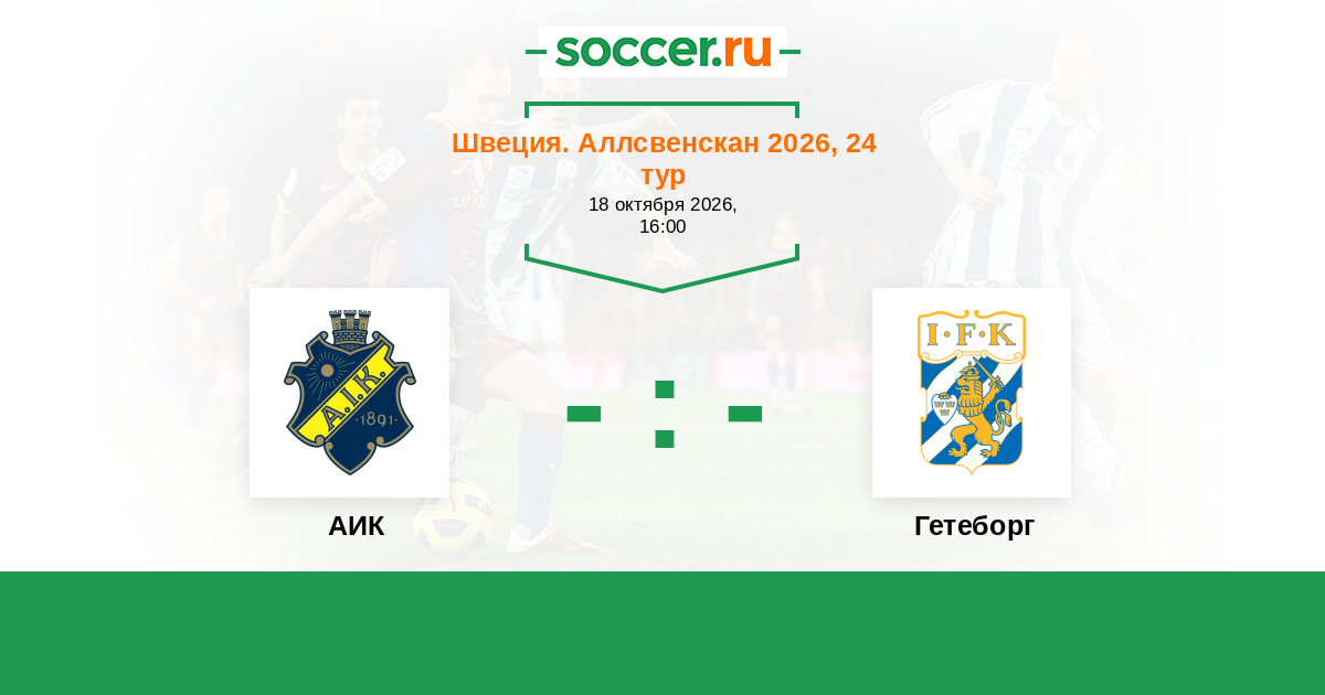Швеция. Аллсвенскан 18.10.2020 АИК Логотип футбольный клуб АИК (Стокгольм) 2:0 Логотип футбольный клуб Гетеборг Гетеборг