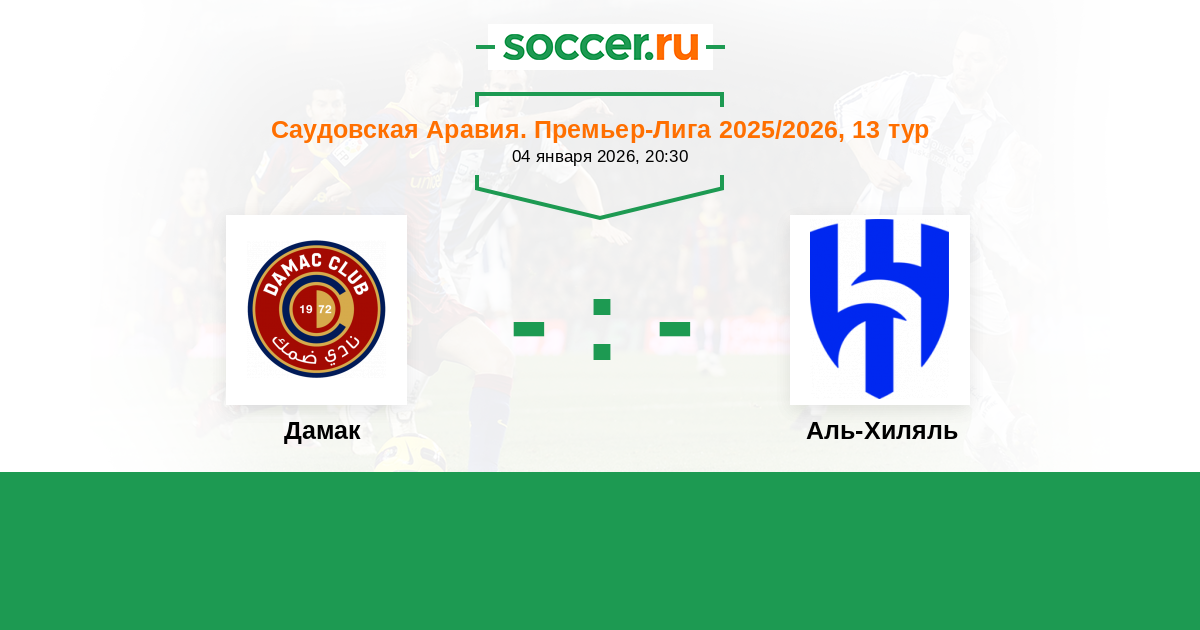 Дамак - Аль - Хиляль ! После осечек лидеров у гостей сегодняшнего матча - должны " вырасти крылья " и понести их в атаку . У хозяев поля свои не отложные задачи - " снизу подпекает " . ТБ .
