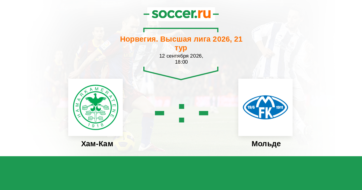 Норвегия. Высшая лига 21.10.2006 Мольде Логотип футбольный клуб Мольде 1:1 Логотип футбольный клуб Хам-Кам (Хамар) Хам-Кам