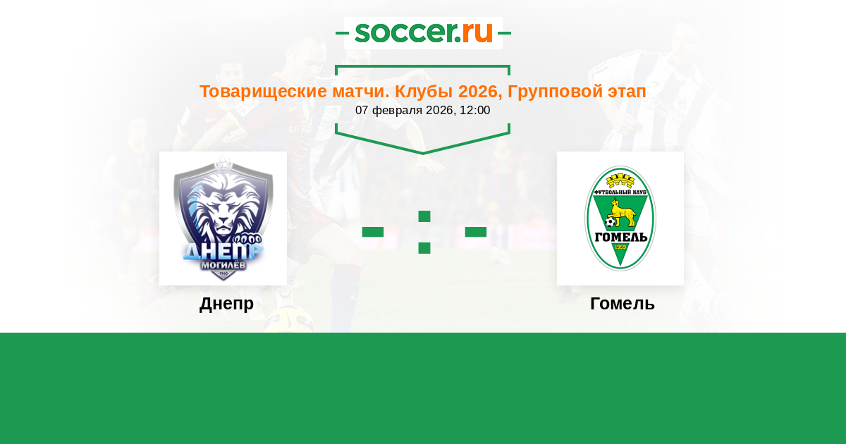 Товарищеские матчи. Клубы 15.02.2023 Гомель Логотип футбольный клуб Гомель 1:0 Логотип футбольный клуб Днепр (Могилев) Днепр