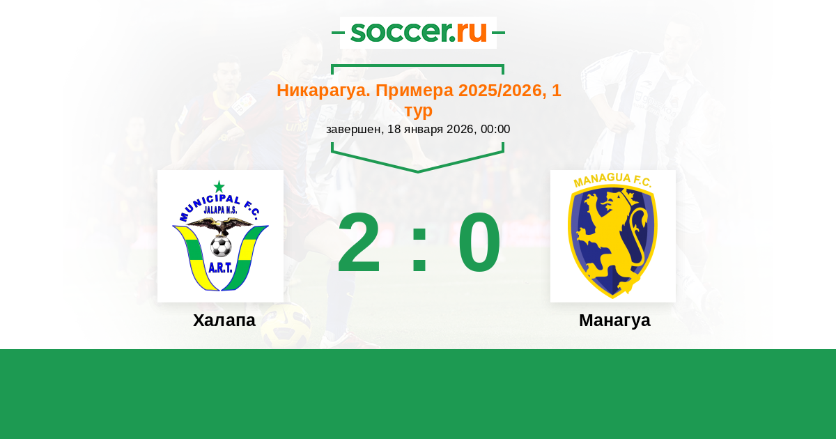 Никарагуа. Примера 06.04.2025 Манагуа Логотип футбольный клуб Манагуа 3:1 Логотип футбольный клуб Халапа (Окоталь) Халапа