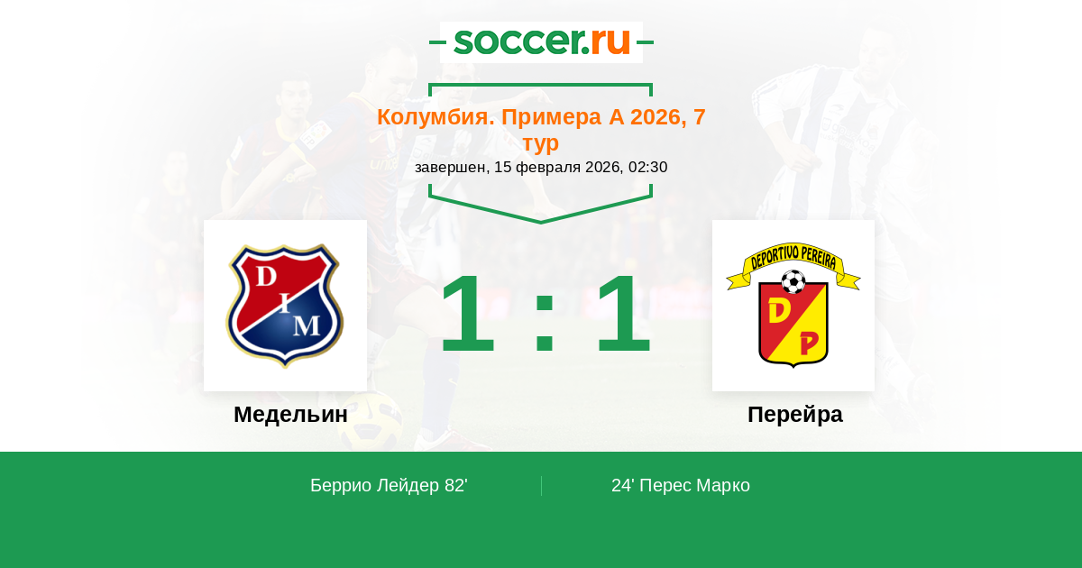 Колумбия. Примера А 23.09.2022 Медельин Логотип футбольный клуб Медельин 2:1 Логотип футбольный клуб Перейра Перейра