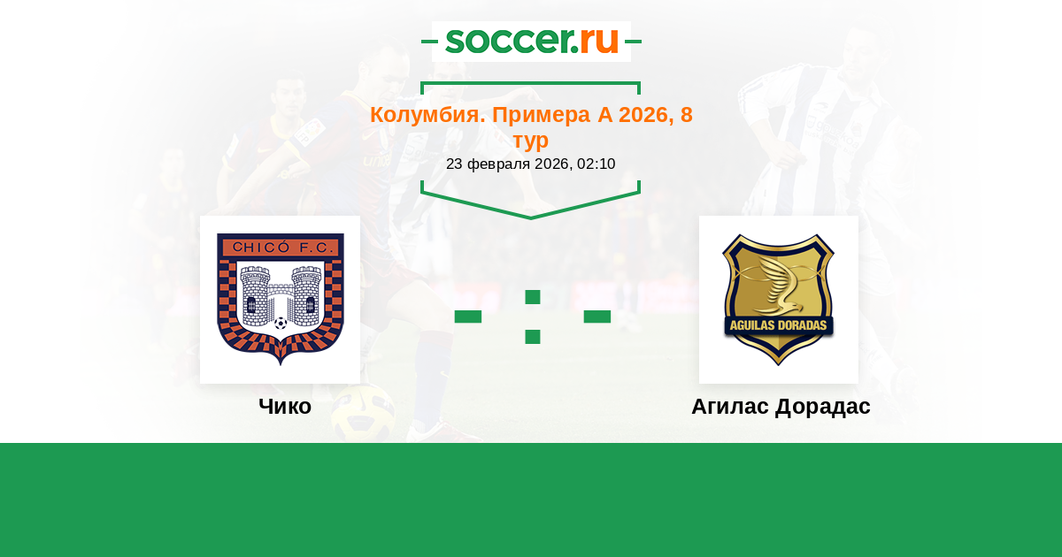 Колумбия. Примера А 17.02.2018 Чико Логотип футбольный клуб Чико (Тунха) 1:2 Логотип футбольный клуб Агилас Дорадас (Рионегро) Агилас Дорадас