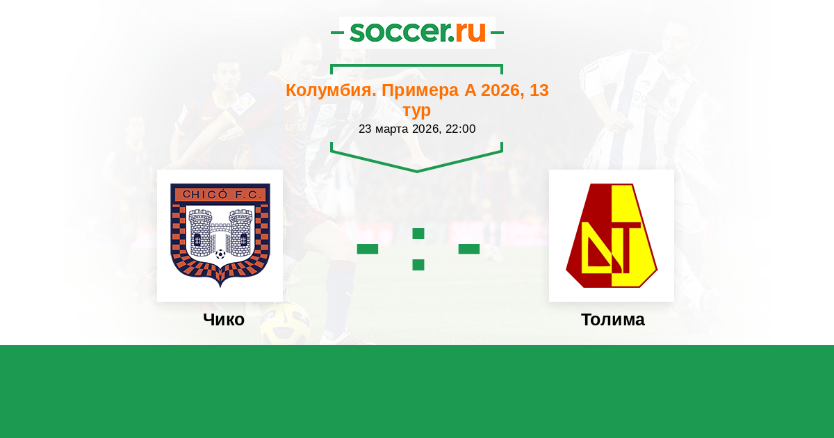 Колумбия. Примера А 24.04.2023 Чико Логотип футбольный клуб Чико (Тунха) 2:0 Логотип футбольный клуб Толима (Ибаге) Толима