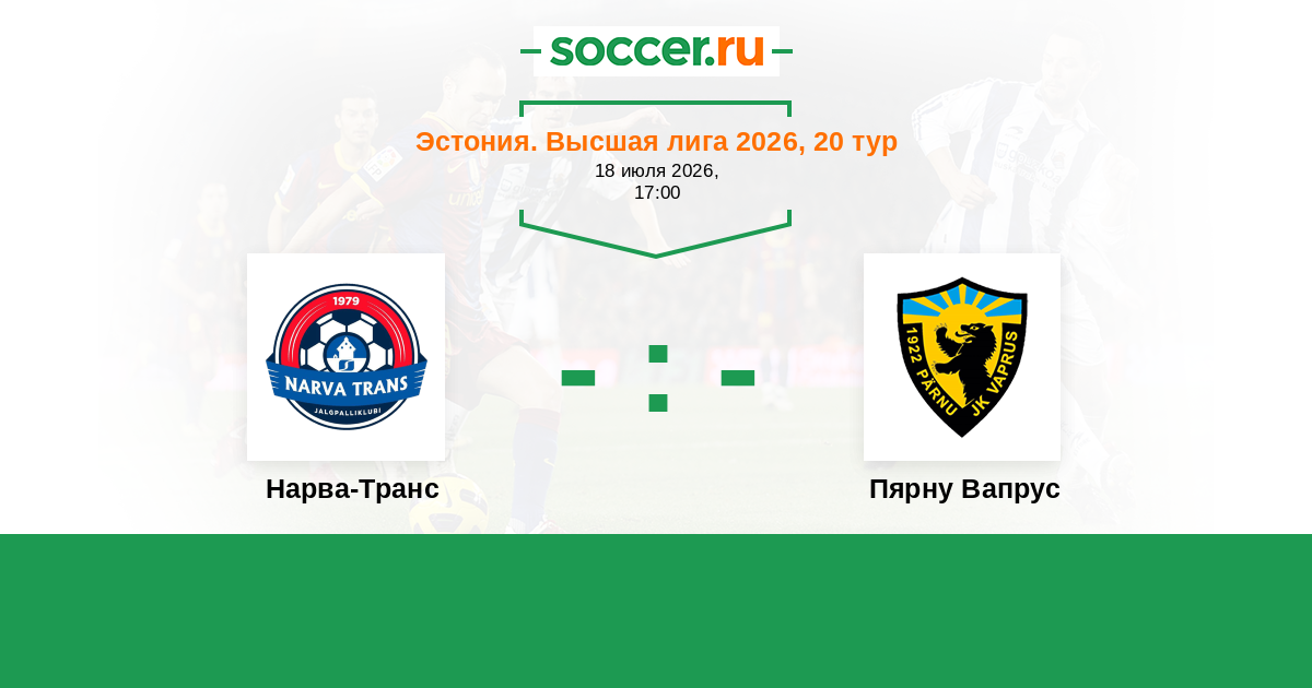 Эстония. Высшая лига 20.03.2021 Нарва-Транс Логотип футбольный клуб Нарва-Транс 1:1 Логотип футбольный клуб Пярну Вапрус Пярну Вапрус