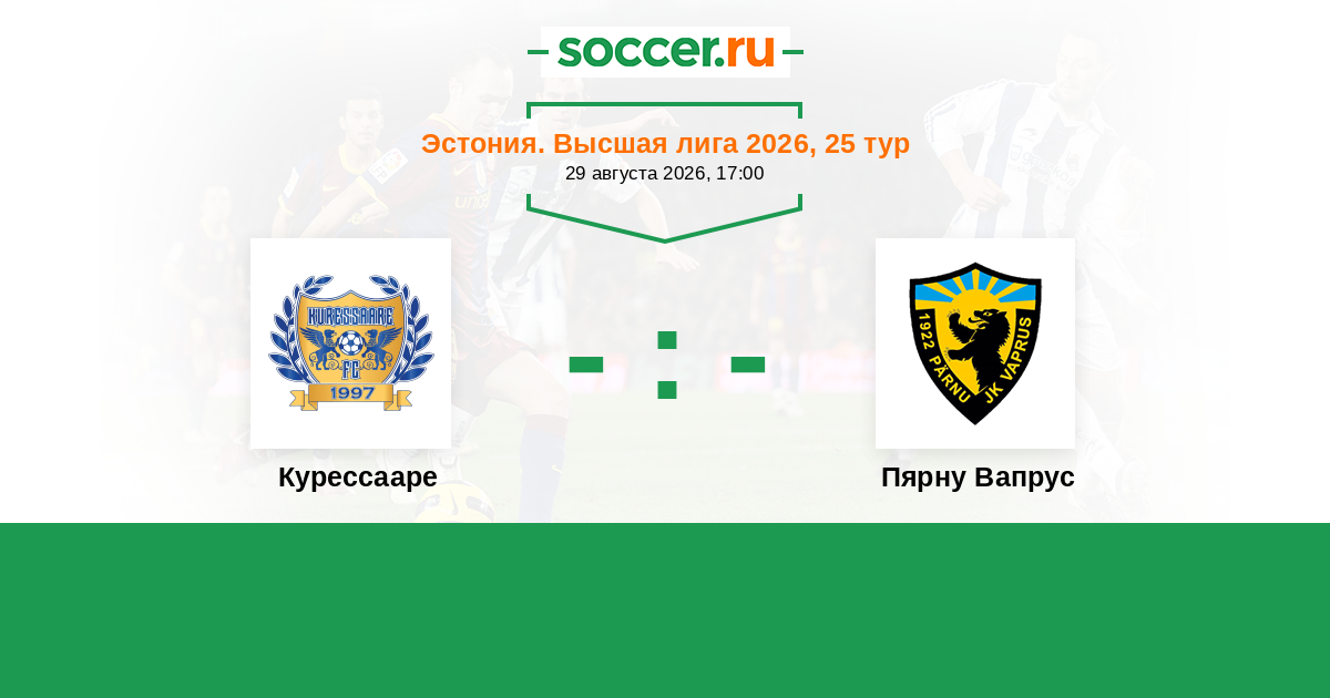 Эстония. Высшая лига 01.06.2025 Пярну Вапрус Логотип футбольный клуб Пярну Вапрус 2:1 Логотип футбольный клуб Курессааре Курессааре