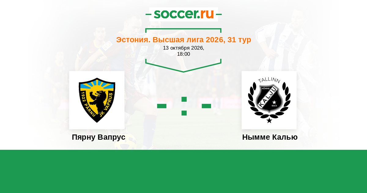 Эстония. Высшая лига 18.04.2021 Нымме Калью Логотип футбольный клуб Нымме Калью (Таллин) 0:1 Логотип футбольный клуб Пярну Вапрус Пярну Вапрус