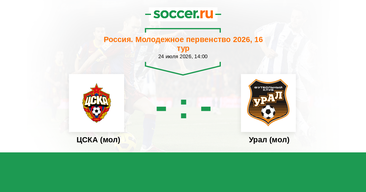Россия. Премьер-Лига U21 16.09.2022 ЦСКА (мол) Логотип футбольный клуб ЦСКА (мол) (Москва) 1:1 Логотип футбольный клуб Урал (мол) (Екатеринбург) Урал (мол)
