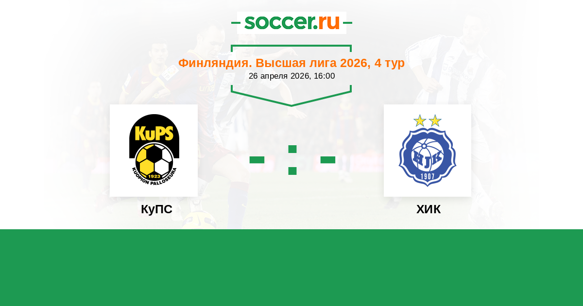 Финляндия. Высшая лига 16.04.2010 КуПС Логотип футбольный клуб КуПС (Купио) 0:5 Логотип футбольный клуб ХИК (Хельсинки) ХИК