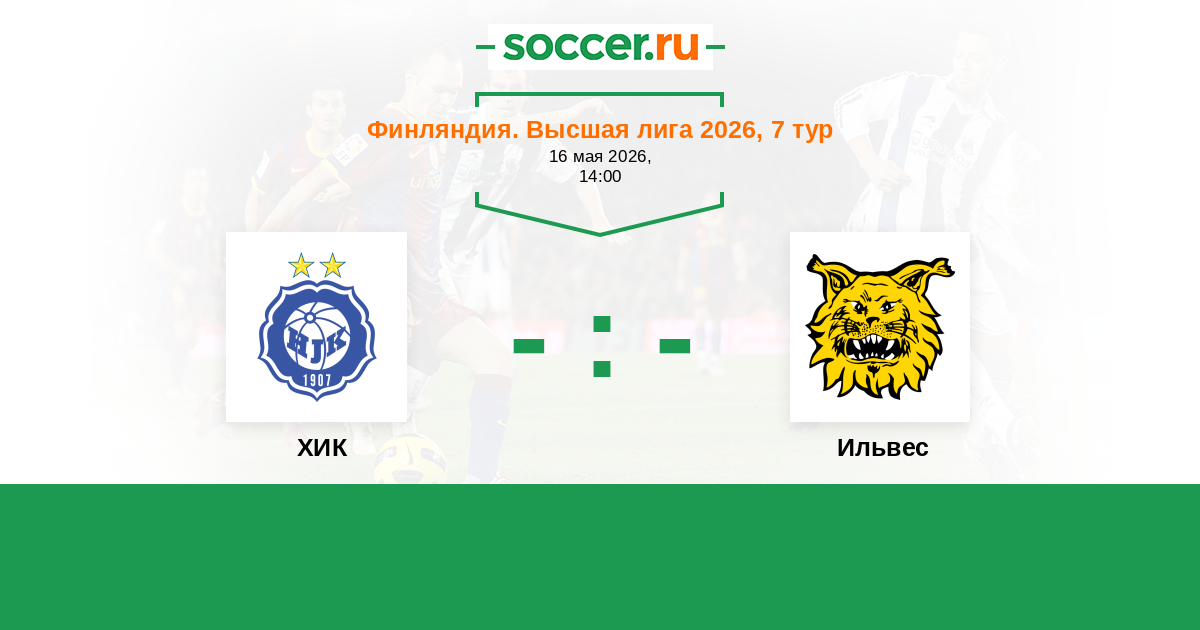Финляндия. Высшая лига 16.06.2018 Ильвес Логотип футбольный клуб Ильвес (Тампере) 0:0 Логотип футбольный клуб ХИК (Хельсинки) ХИК