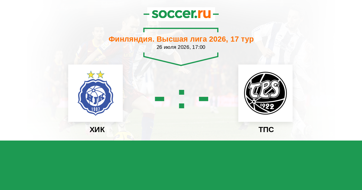 Финляндия. Высшая лига 14.07.2018 ХИК Логотип футбольный клуб ХИК (Хельсинки) 2:1 Логотип футбольный клуб ТПС (Турку) ТПС