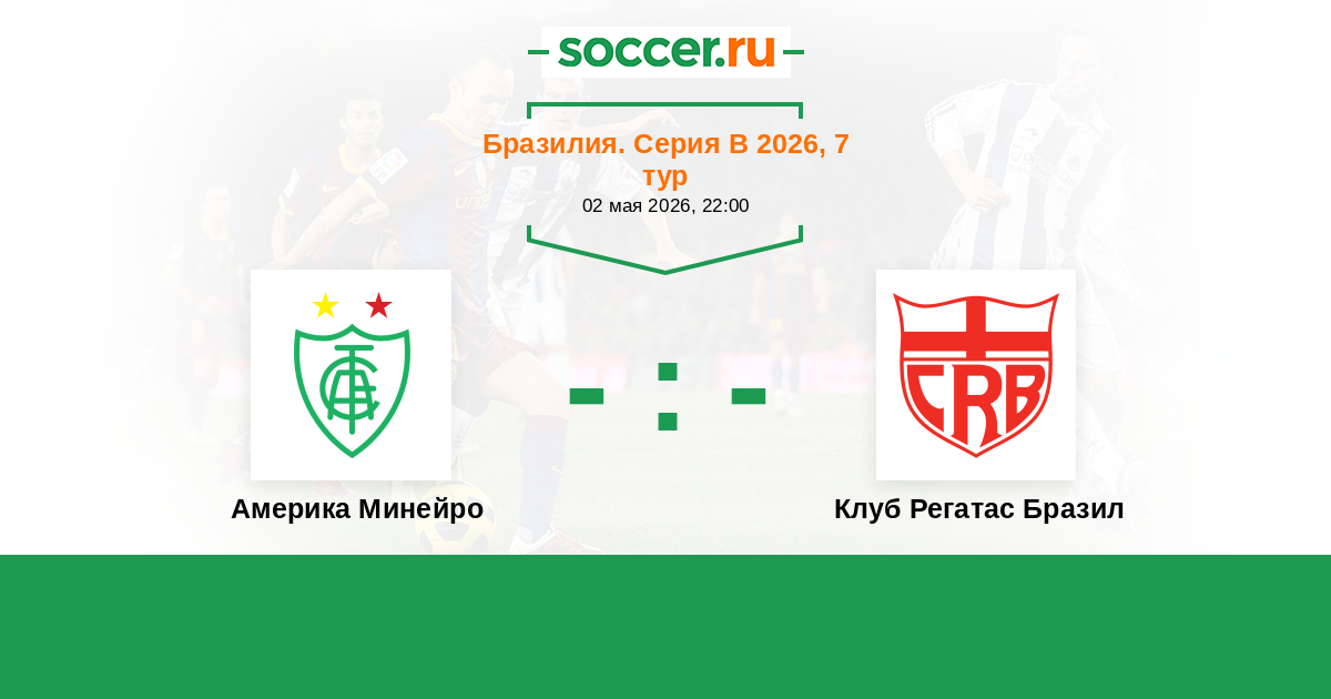 Бразилия. Серия В 09.06.2019 Клуб Регатас Бразил Логотип футбольный клуб Клуб Регатас Бразил (Масейо) 1:3 Логотип футбольный клуб Америка Минейро (Белу-Оризонти) Америка Минейро