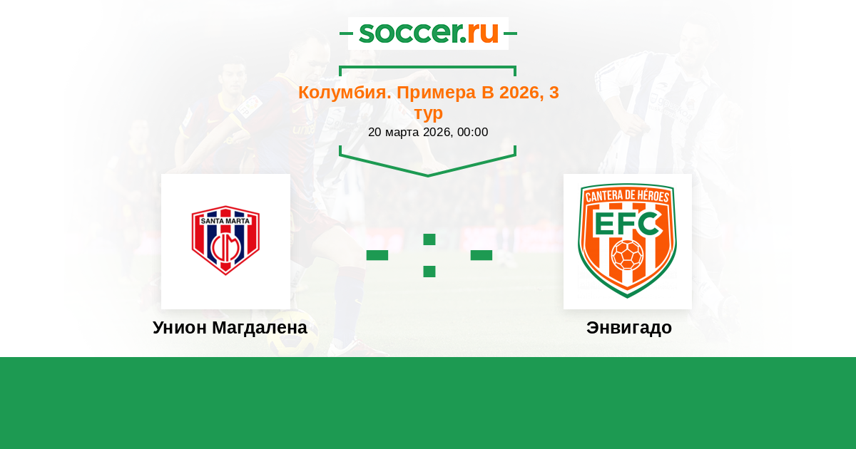 Колумбия. Примера А 01.08.2023 Энвигадо Логотип футбольный клуб Энвигадо 0:0 Логотип футбольный клуб Унион Магдалена (Санта Марта) Унион Магдалена