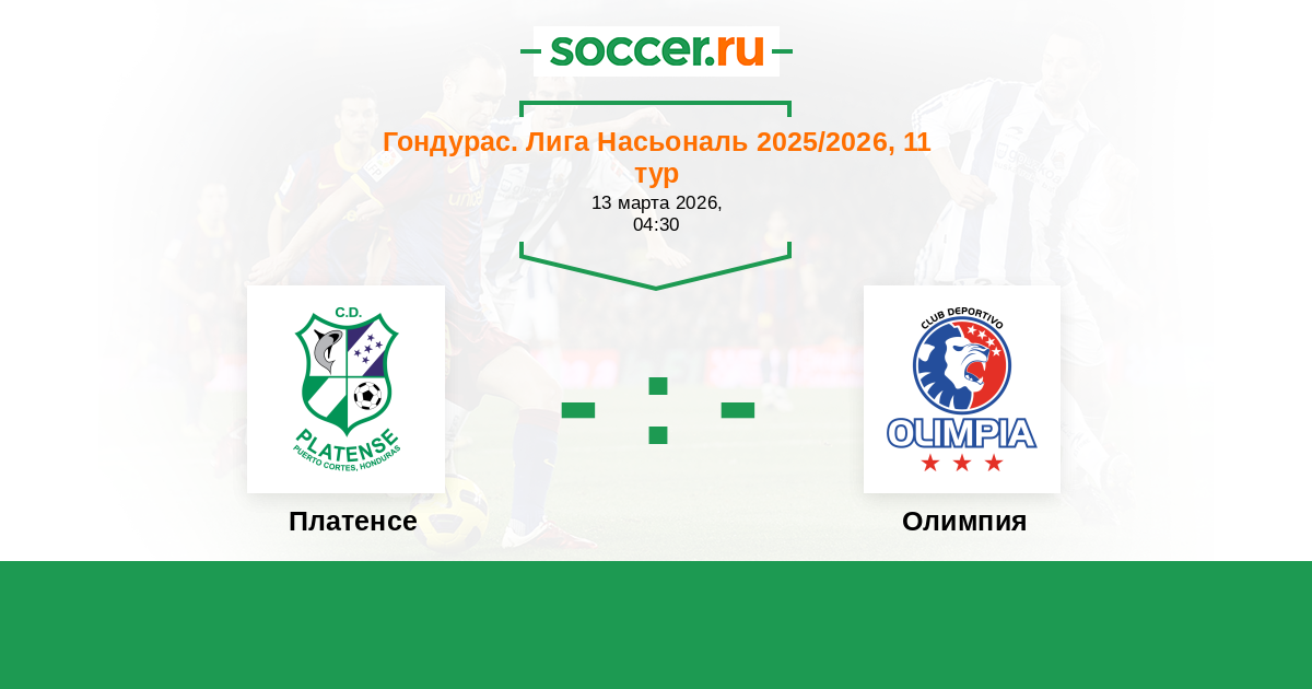 Гондурас. Лига Насьональ 05.04.2013 Олимпия Логотип футбольный клуб Олимпия (Тегусигальпа) 2:0 Логотип футбольный клуб Платенсе (Пуэрто Кортес) Платенсе