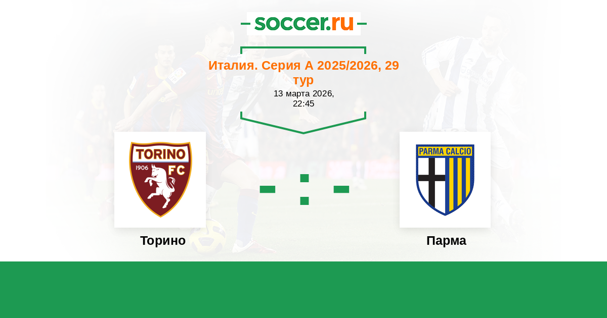 Италия. Серия А 05.01.2025 Торино Логотип футбольный клуб Торино (Турин) 0:0 Логотип футбольный клуб Парма Парма