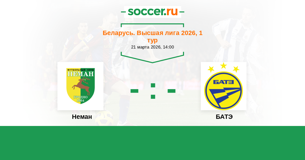 Беларусь. Высшая лига 07.06.2014 БАТЭ Логотип футбольный клуб БАТЭ (Борисов) 0:0 Логотип футбольный клуб Неман (Гродно) Неман