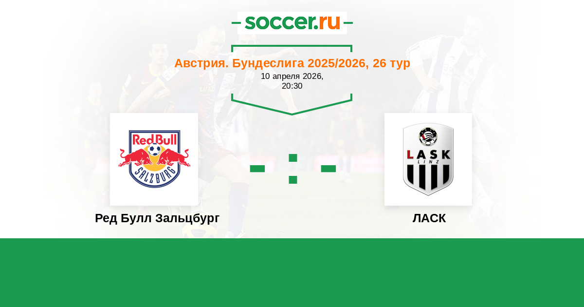 Австрия. Бундеслига 18.04.2010 ЛАСК Логотип футбольный клуб ЛАСК (Линц) 0:0 Логотип футбольный клуб Ред Булл Зальцбург Ред Булл Зальцбург