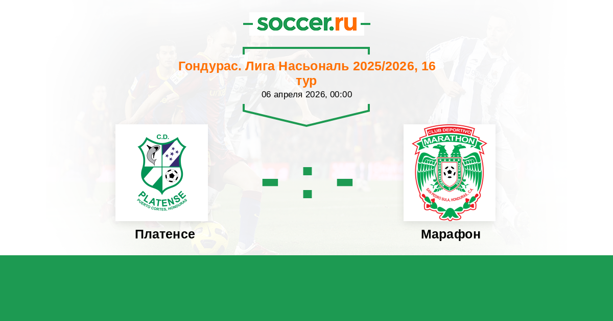 Гондурас. Лига Насьональ 04.04.2021 Марафон Логотип футбольный клуб Марафон (Сан-Педро-Сула) 1:0 Логотип футбольный клуб Платенсе (Пуэрто Кортес) Платенсе