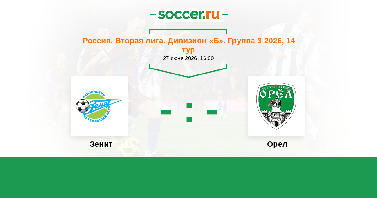 Россия. Вторая лига. Дивизион «Б». Группа 3 30.08.2025 Орел Логотип футбольный клуб Орел 1:0 Логотип футбольный клуб Зенит (Пенза) Зенит